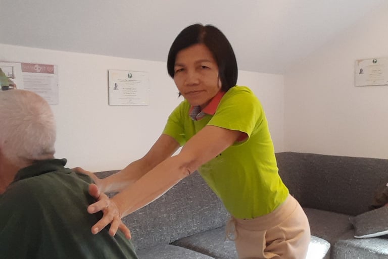 Mein Lehrer hat uns aus seiner über 25-jährigen Erfahrung unterrichtet und Methoden sowie Techniken zur systematischen Anwendung der Tiefenmassage und der traditionellen Thai-Massage entwickelt. Diese umfassen: